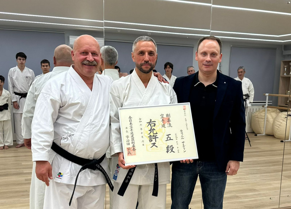 Главным событием семинара стало торжественное вручение официально документа, пришедшего из Японии. Перед началом серии тренировок Александр Даренков и Василий Зюкалин вручили президенту Федерации Годзю-рю каратэ-до РТ, шеф-инструктору Годзю-рю каратэ-до Сейвакай РТ известному в Татарстане тренеру Рафаэлю Самигуллину сертификат о присвоении Пятого дана Японской Федерации Годзю-рю каратэ-до (JKF Gojukai).