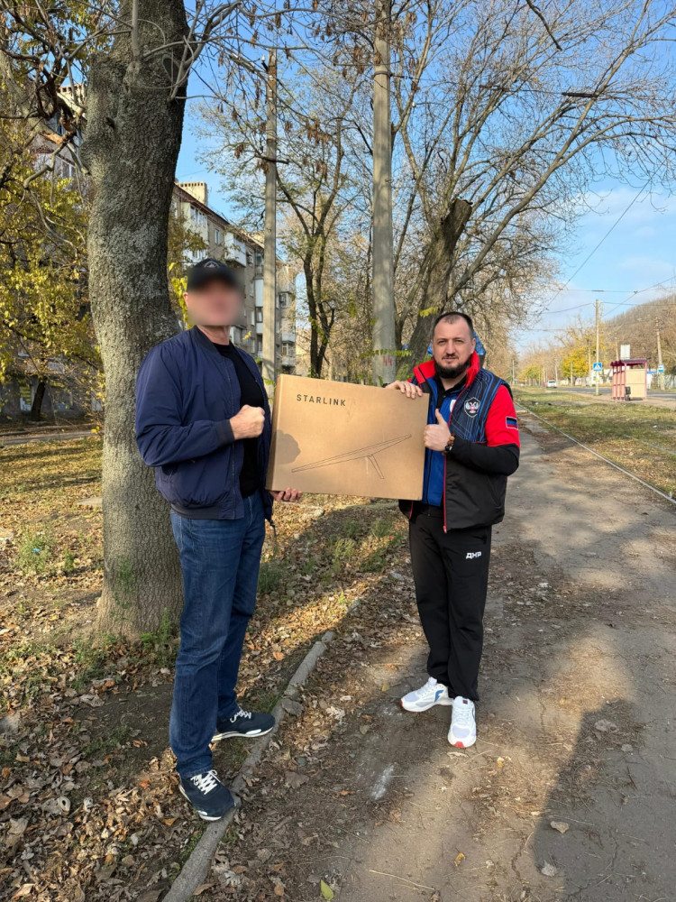 Исполнительный директор ростовского филиала РСБИ Ярослав Стуров встретился с командиром отряда "СОЮЗ" с позывным "Лев" и передал для бойцов станцию "STARLINK".