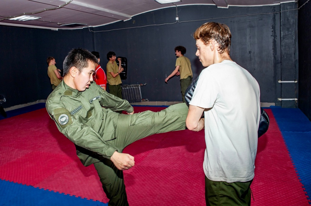 Мастер спорта международного класса Жаргал Дамдинов, тренер по армейскому рукопашному бою Александр Мергинёв и мастер спорта международного класса по тхэквондо, чемпион ДФО по кикбоксингу Борис Баглаев помогли ребятам отработать сложные приемы, повысить свои навыки и разобраться в боевой технике.