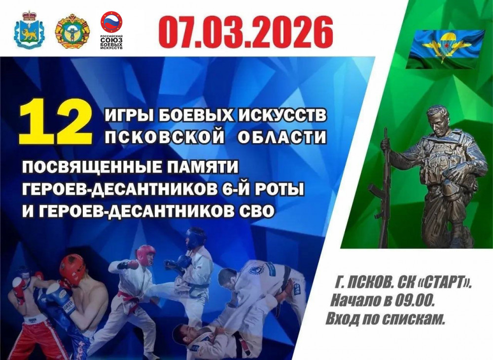 7 марта пройдут XII Игры боевых искусств Псковской области, посвященные памяти героев-десантников 6-ой роты и героев десантников СВО