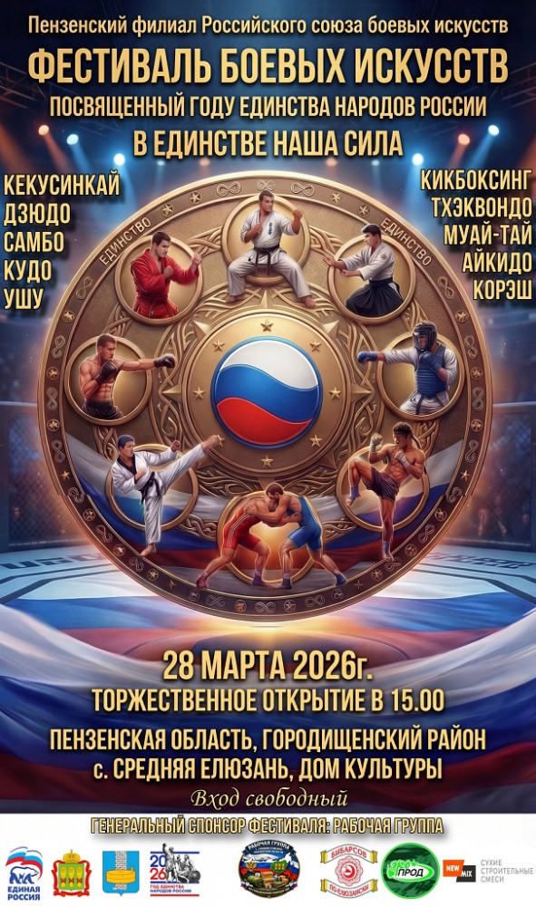 28 марта в с. Средняя Елюзань (Пензенская область) состоится Фестиваль боевых искусств «В единстве - наша сила!», посвященный Году единства народов России.