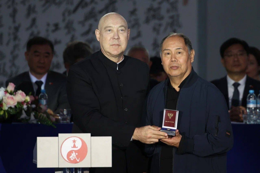 От имени посольства КНР в РФ участников поздравили полномочный министр Чжан Вэй, советник - посланник Фэн Литао и первый секретарь посольства Юй Го. Легендарный создатель современного спортивного ушу У Бинь вручил сборной России знамя с надписью «Воинская доблесть»!