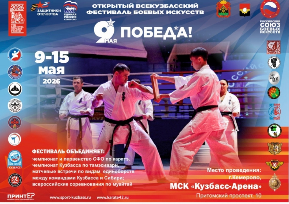 Событие пройдет в МСК "Кузбасс Арена". Старт будет дан 9 мая в 13.00 на открытии Чемпионата и Первенства СФО по каратэ, где пройдут показательные выступления по разным видам единоборств, матчевая встреча команд Кузбасса и Сибири по каратэ. В 18.00 начнется открытый чемпионат Кузбасса по тамэсивари, а по окончании матчевые встречи по киокусинкай между командами Томской области и Кузбасса.